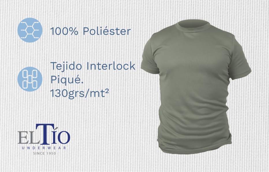 Composición: 100% Poliéster. Tejido: Interlock Piqué. Peso: 130grs/mt2. Color: Foliage Green. Tallas: XS – S – M – L – XL – XXL.